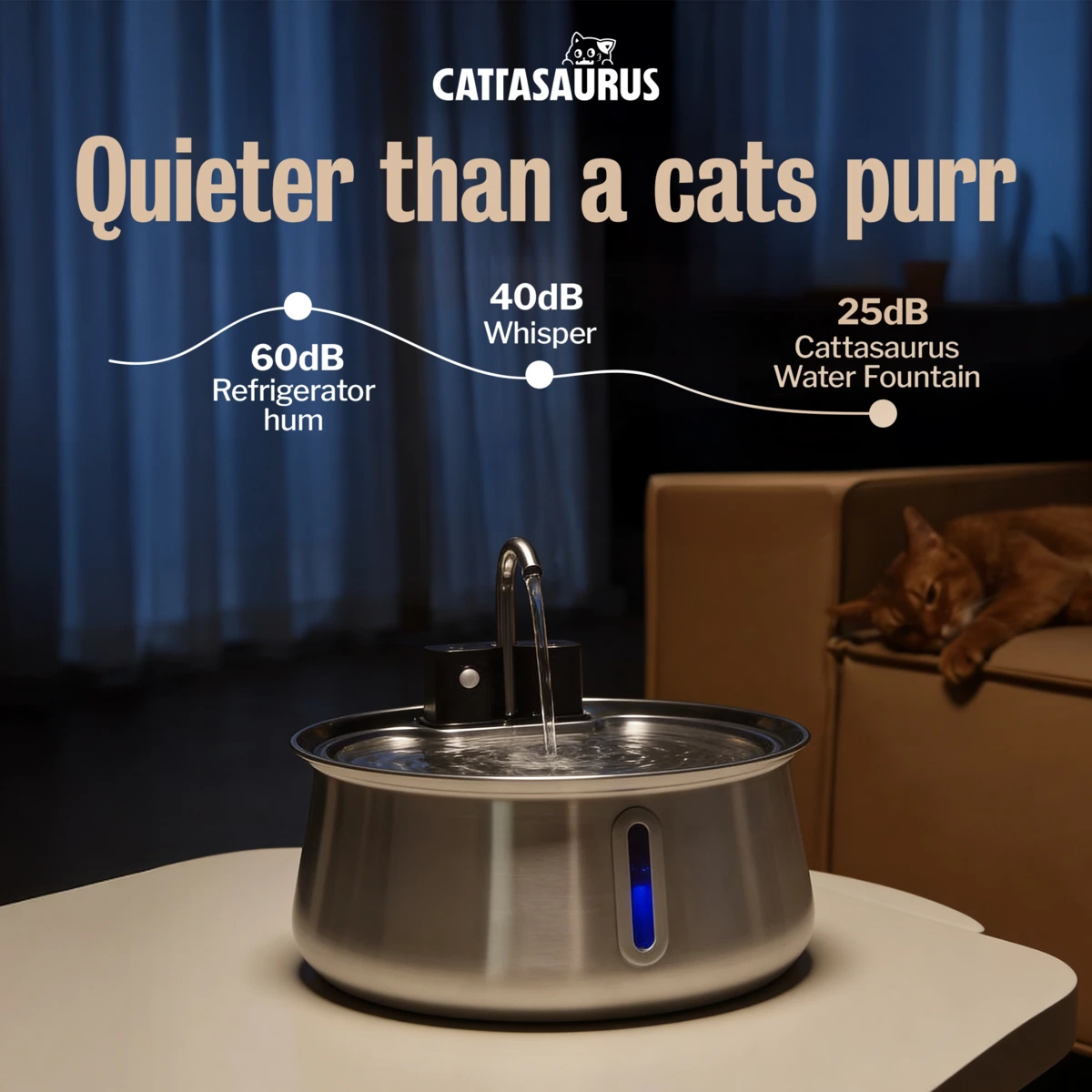Our ultra-quiet operation supports your cat's preference for calm hydration, encouraging them to drink more and stay healthier without any anxiety.