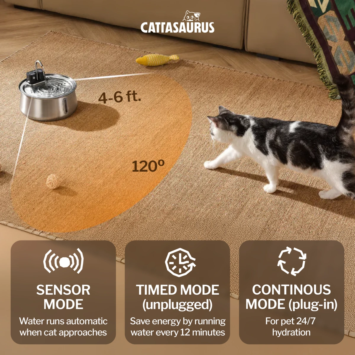 Wireless convenience – Three flow modes match your cat's preferences and encourage drinking