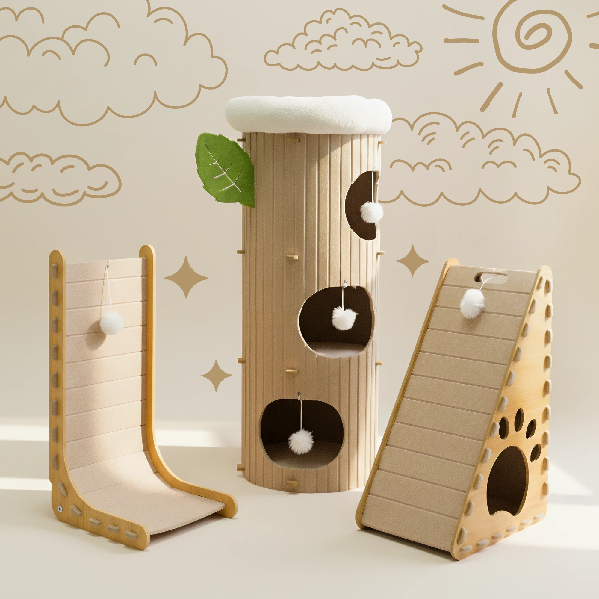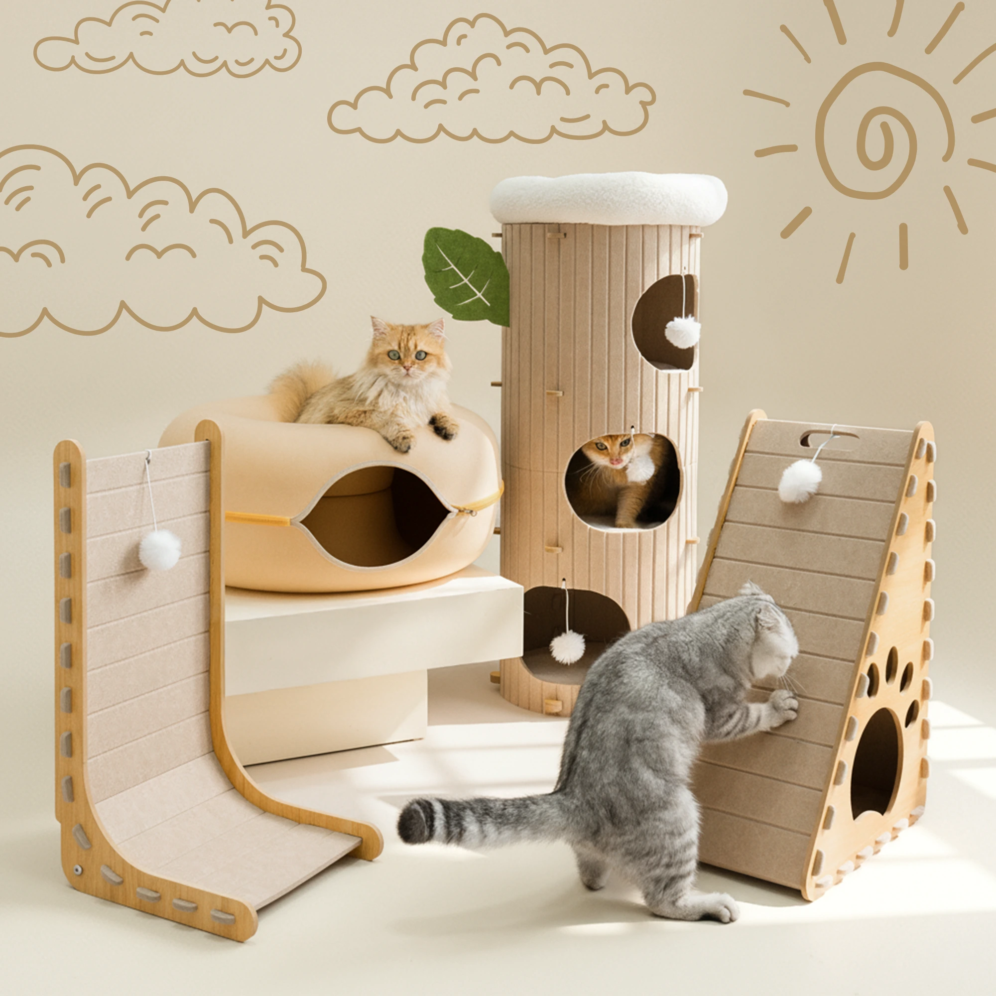 Ramp Scratcher: Perfect for cats who prefer steep-angle scratching.