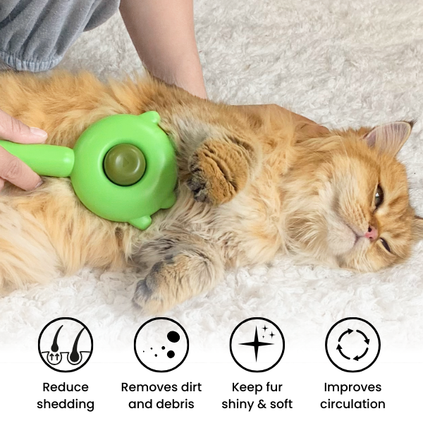 This Cattasaurus Self-Cleaning Brush™ removes loose hair and massages your cat in the most gentle way possible, leaving a healthy and shiny fur, free from tangles & knots.